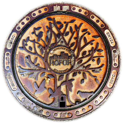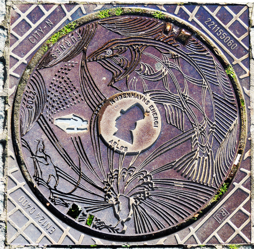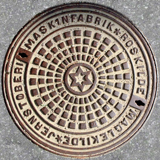 Kopenhagen ist ein Eldorado für Drainspotter! Neben dem Stadtdeckel gibt es eine Vielzahl an Ver- und Entsorger mit eigenen Motiven. Neben den aktuellen Logos findet man aber auch alte Deckel. So wurde zum Beispiel aus Københavns energi das neue städtische Unternehmen HOFOR. Dazu kommen noch alte Eisengießereien und Baustoff-Großhändler. Und das Design-Museum verfügt sogar über eigene Motivdeckel im Eingangsbereich!