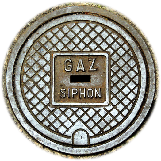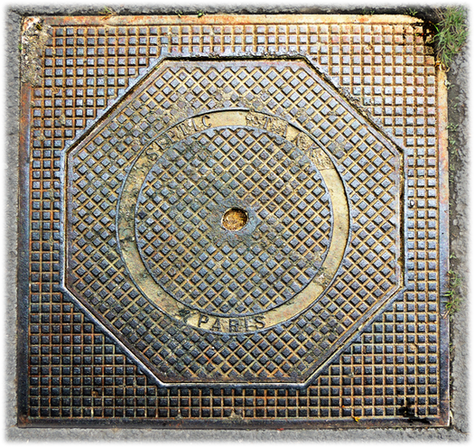 Septic tank = Klärgrube, vermutlich in Paris gegossen.