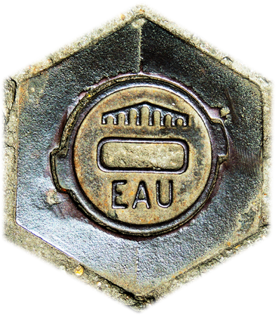 Absperrschieber-Deckel mit der deutschen Beschriftung "Wasserwerk".