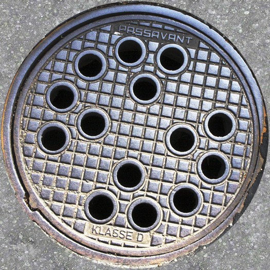 Ein außergewöhliches Lochmuster zeigt dieser Passavant-Deckel mit nur 40 Zentimerter Durchmesser in der Horner Landstraße in Hamburg-Horn.