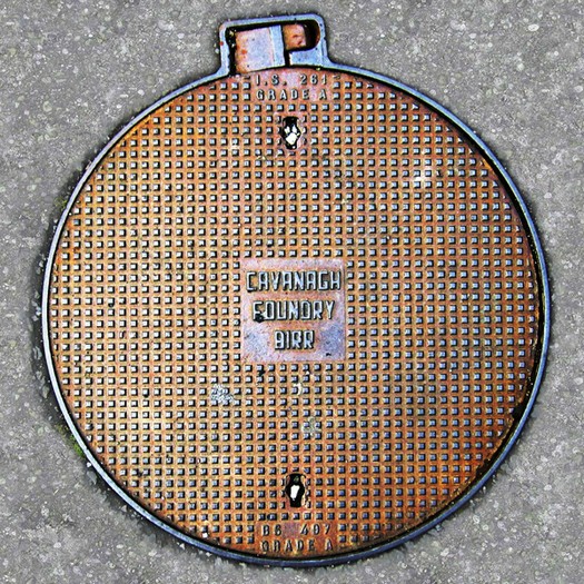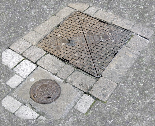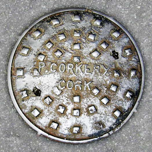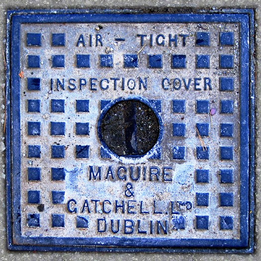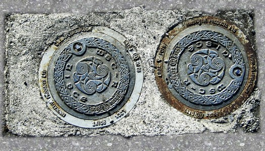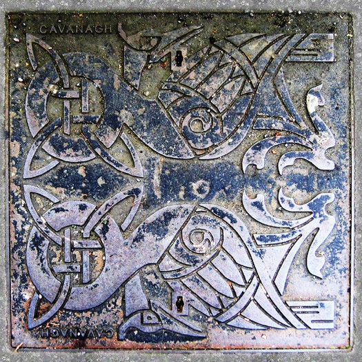 Besonders interessant sind die kleinen, wunderschön designte Deckel (Durchmesser ca. 20 Zentimeter), die ich Galway fotografiert habe. Sie finden sich aber auch andernorts in Irland.