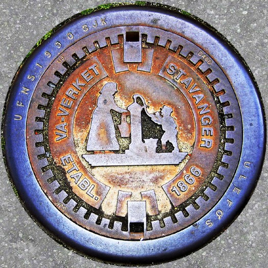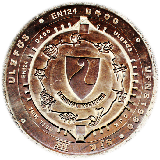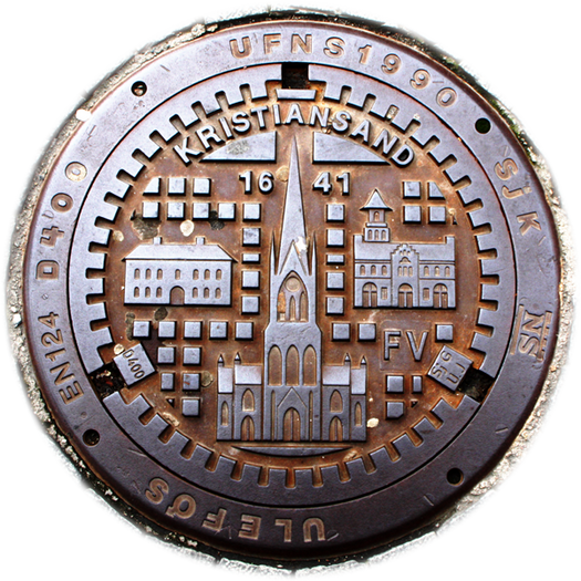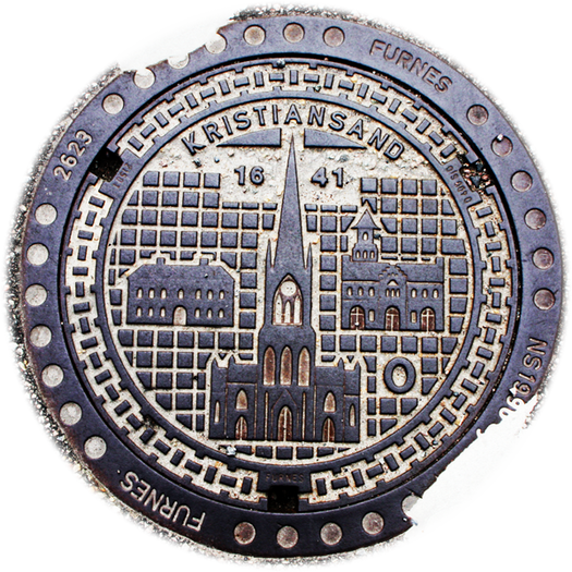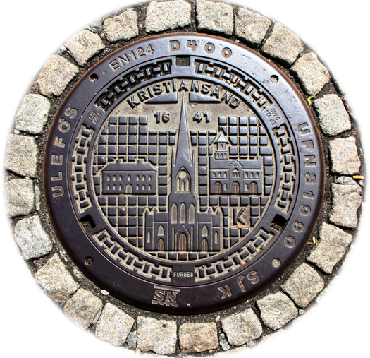 In Kristiansand tragen die Deckel Kennbuchstaben, mit denen die Stadtwerke kennzeichnen, was sich im Schacht befindet.