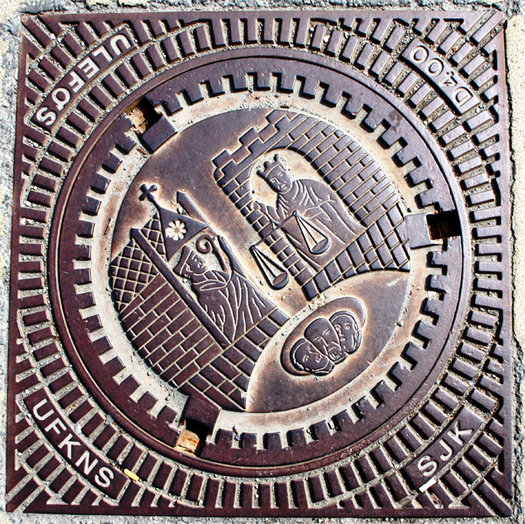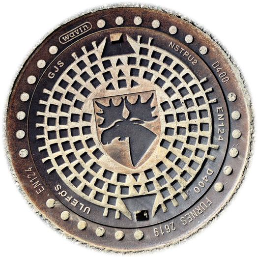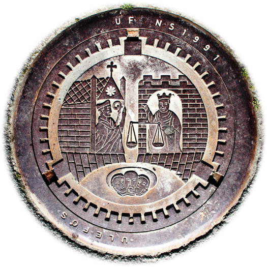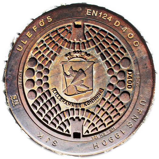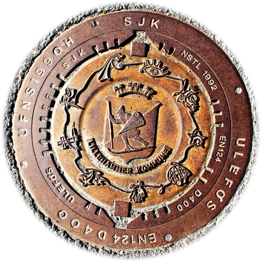 Trondheim nutz das Wappenmotiv (Stadtsiegel) für die Schachtdeckel.