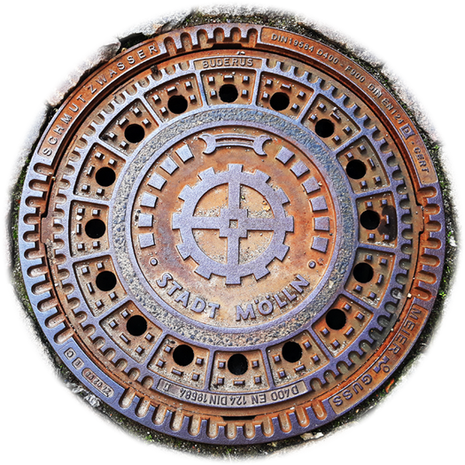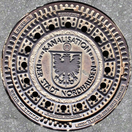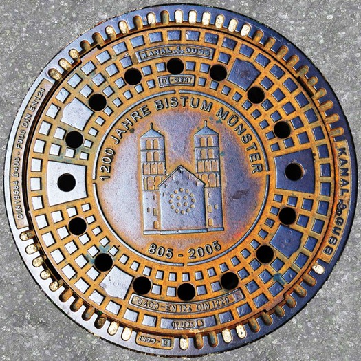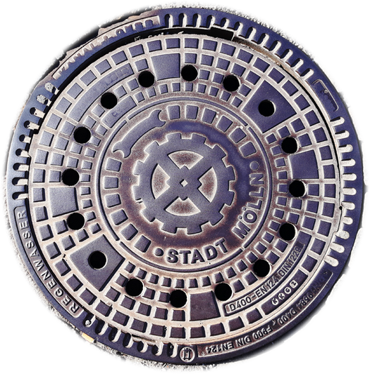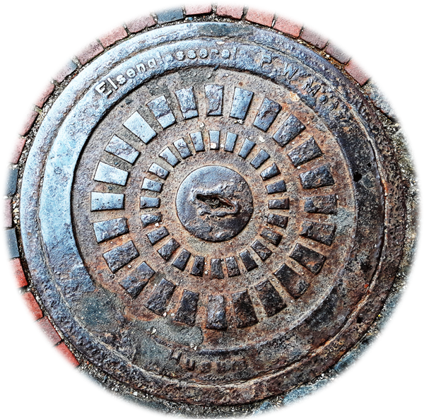 Die Stadt bietet eine Vielzahl unterschiedlicher Motive und hat auch einen Gullydeckel mit Logo im Programm.