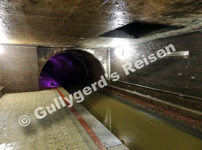 Auf Einladung der Hamburger Wasserwerke bot sich mir die Gelegenheit, diesen Einstieg in Hamburgs Unterwelt zu besichtigen. Erstaunlicherweise roch es nicht besonders - ich hatte es mir schlimmer vorgestellt. Allerdings wird der Bereich des Anlegers durch die Öffnung benachbarter Schachtdeckel belüftet, wodurch hier unten ein "frischer" Wind weht.