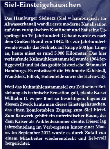Nach dem großen Brand im Mai 1842 erhielt der englische Ingenieur William Lindley den Auftrag, eine Kanalisation in Hamburg zu bauen.Hamburgs innerstädtisches Sielnetz – es ist das älteste Kontinentaleuropas, nur in England war seinerzeit bereits eine Kanalisation vorhanden – umfasst 943 Kilometer. Sein Bau begann 1842 und war 1910 weitgehend abgeschlossen. Diese Kanäle – in Hamburg Siele genannt – sind bis zu 4,70 Meter breit und 3,85 Meter hoch. Sie bilden auch heute noch das Rückgrat der innerstädtischen Kanalisation.